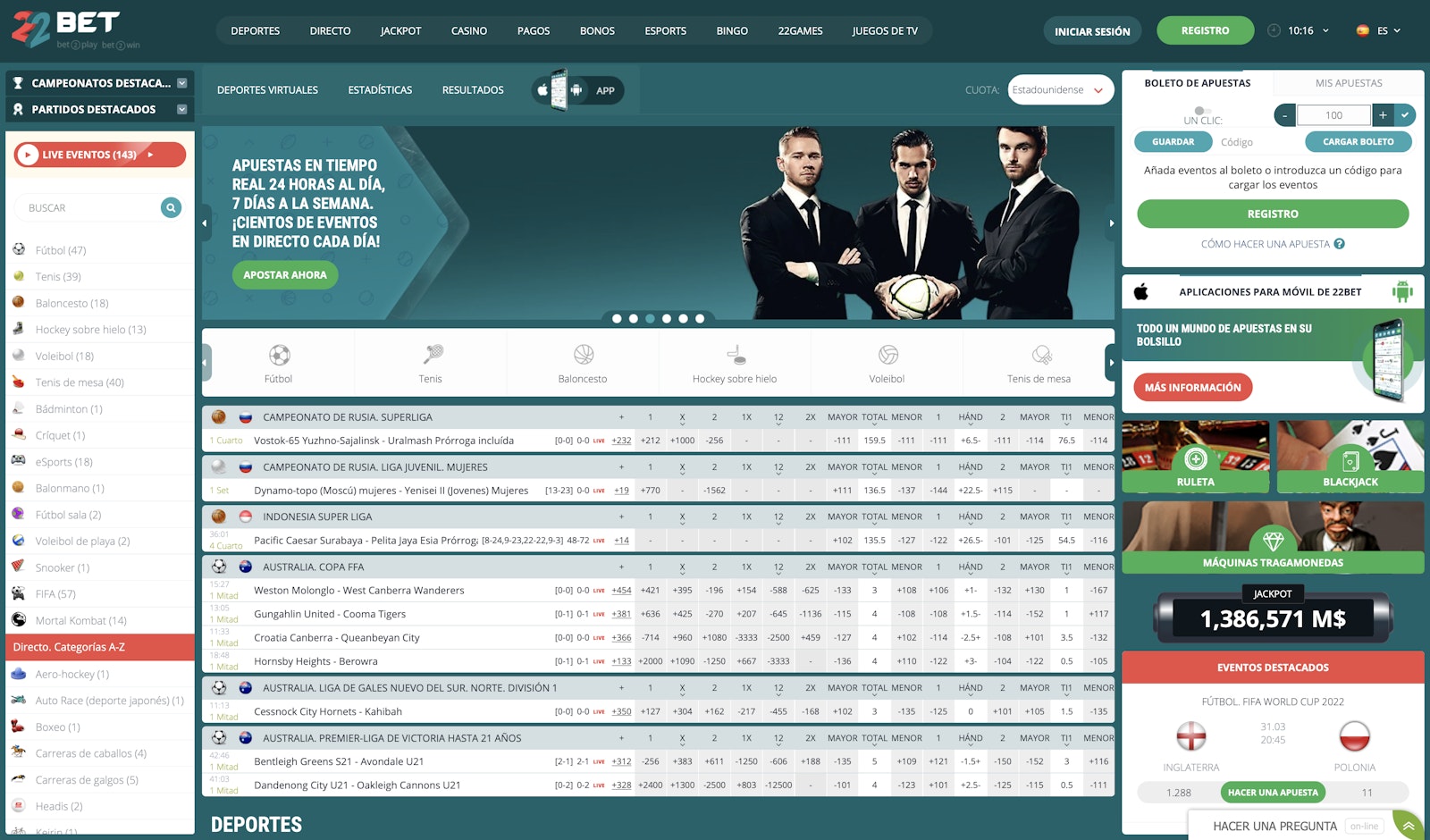 Esto hace que, en conjunto, podamos encontrar en las apuestas deportivas 22Bet prácticamente todo aquello que deseemos.